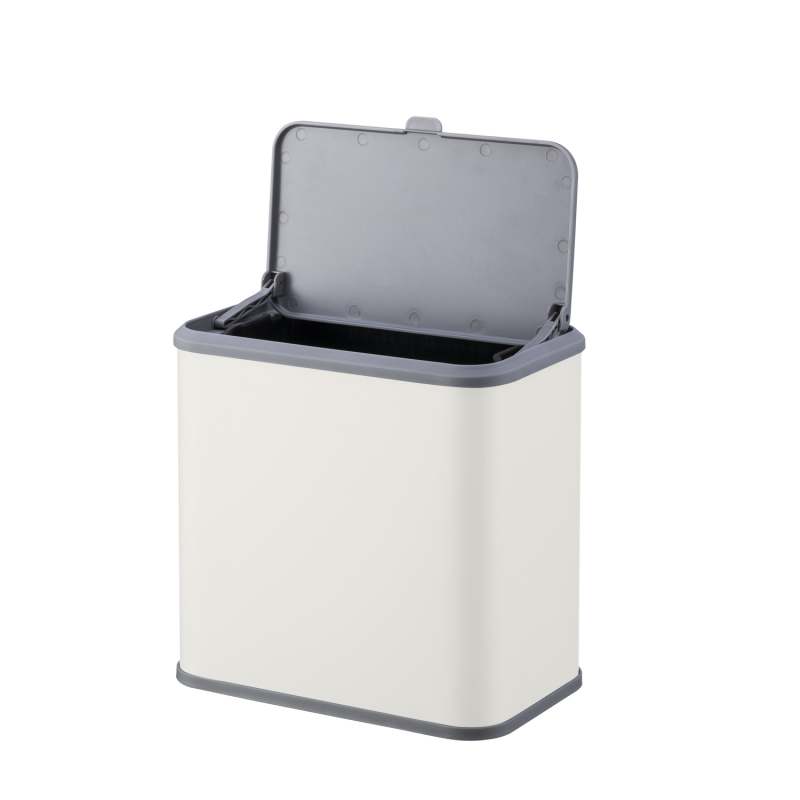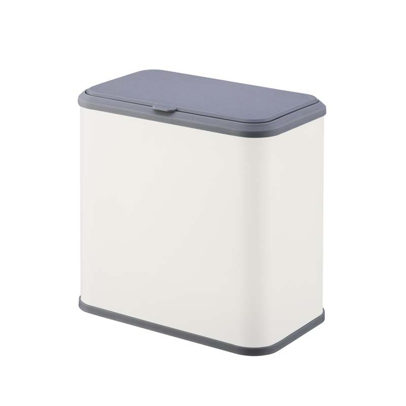 Papelera compacta ideal para cocina, fabricada en acero con acabado beige elegante y resistente.