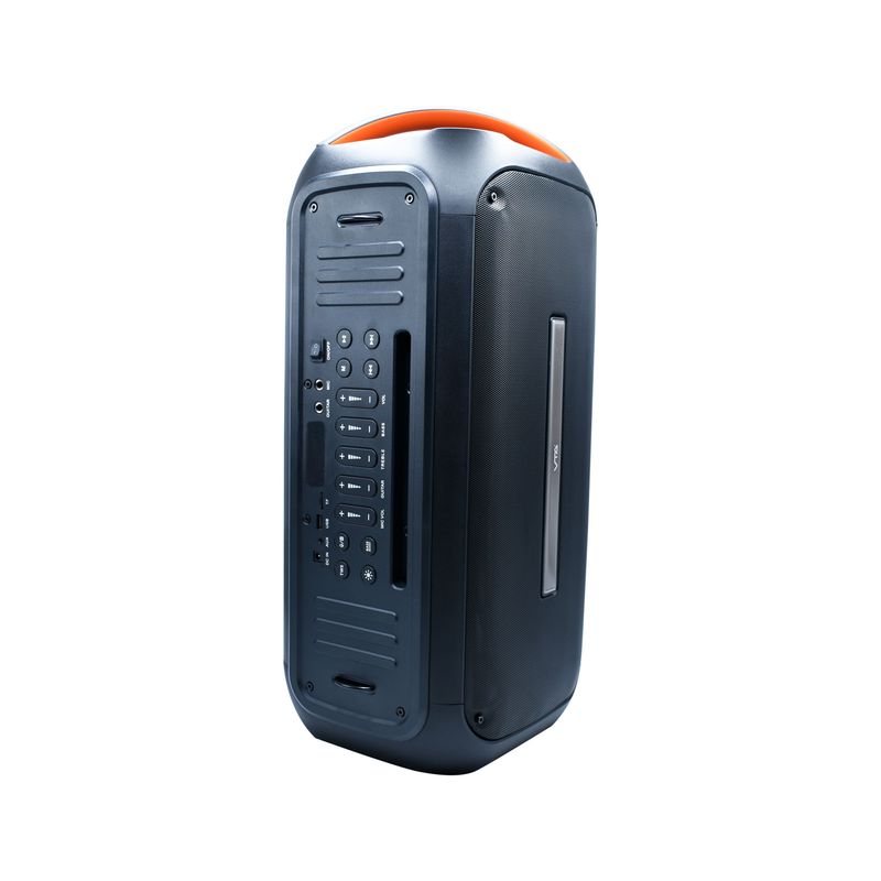 Parlante tipo cabina de alta potencia con 120W RMS y sonido de alta calidad. Cuenta con tecnología de conectividad bluetooth, display Led para visualizar funciones y luces led de alta calidad y secuencias modernas que le dan el toque profesional. Adicional, incluye control remoto.