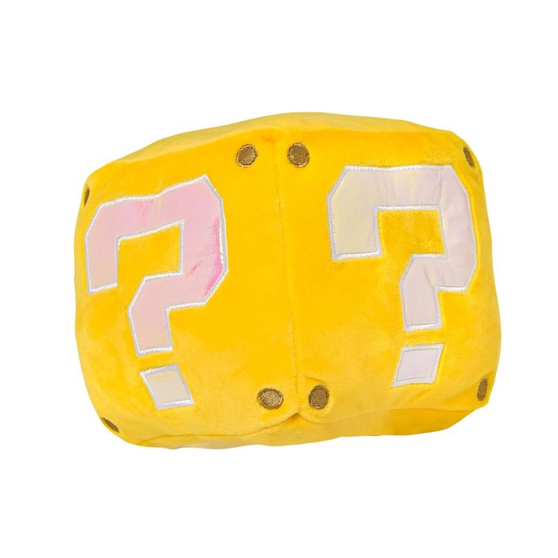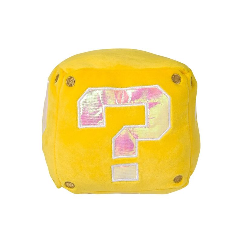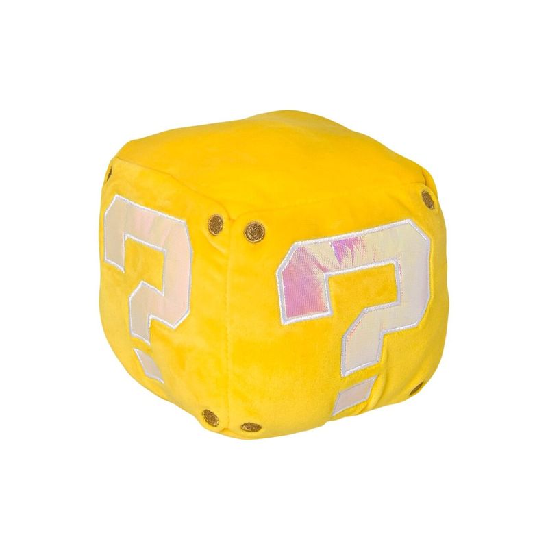 El peluche oficial de Mario Bros en forma de Cubo Mágico reproduce los sonidos clásicos del videojuego al presionarlo. Fabricado en fibras de poliéster suaves y resistentes, combina diversión interactiva y valor coleccionable. Perfecto para fans que buscan un artículo único que evoca la experiencia original de Nintendo.