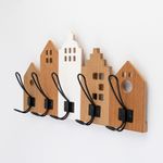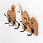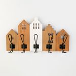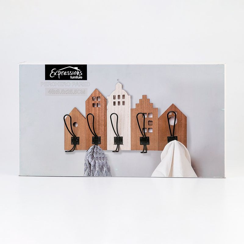 Perchero Pared Expressions 48X5X10Cm Madera Acero Ge10G00036 5 ganchos en forma de casas Ideal para colgar abrigos, llaves o accesorios