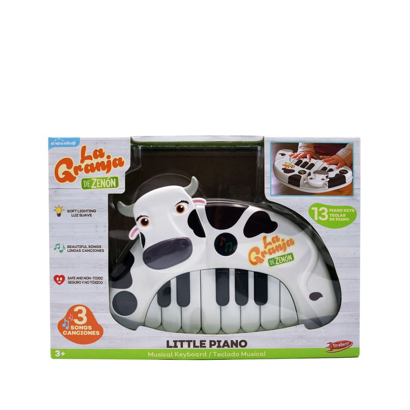 Juguete musical de aprendizaje con los personajes favoritos de La Granja de Zenón, cuenta con las canciones originales de la serie para interactuar, aprender y desarrollar actividades motrices por medio del piano en forma de la Vaca Lola