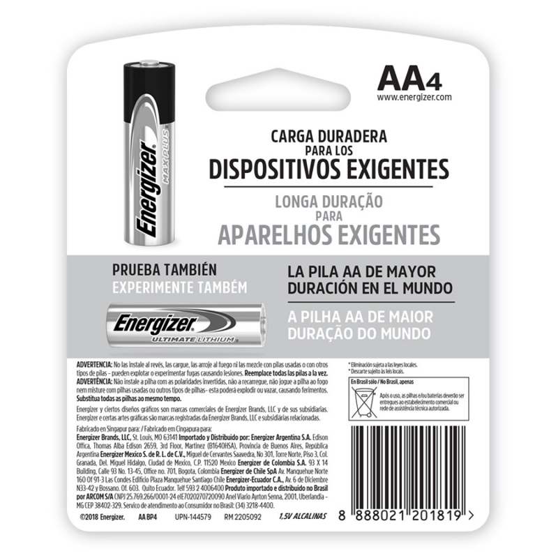 MiniMarketPilas CargadoresPilas AAPila Aa Energizer Max Plus 4 Ud 01819