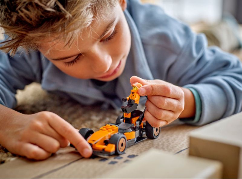 ¡Descubre el mundo de la Formula 1® a través del set LEGO® City Piloto de F1® con Auto McLaren! Explora su diseño de F1 superaerodinámico, con llantas lisas para alcanzar máxima velocidad y control extremo en las curvas. Ponte al volante y siente la adrenalina al acelerar y salir desde la parrilla. ¡Escucha el rugido de la multitud mientras te acercas a la victoria con cada vuelta que das!