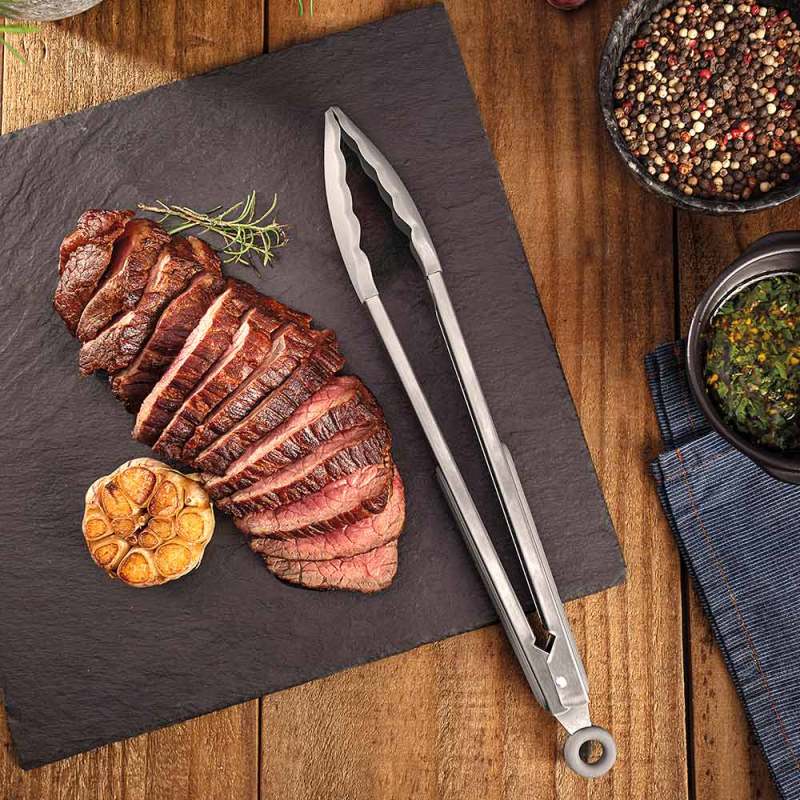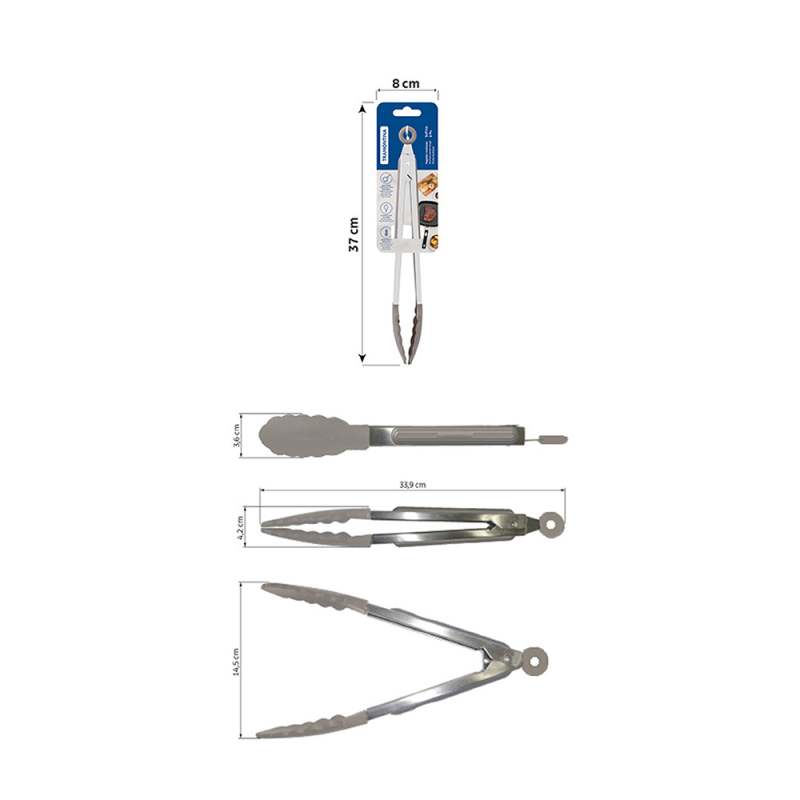 Pinzas de silicona que resisten temperaturas de hasta 210 °C. Mango de acero inoxidable con detalles de silicona y mecanismo de apertura y cierre ajustable. Ideales para usar en sartenes con revestimientos antiadherentes y cerámicos, ya que no dañan el producto. Utensilio de silicona de alta calidad, ideal y seguro para uso alimentario, que cumple con las normativas ANVISA y FDA. Aptas para lavavajillas, para que te resulte más fácil la vida.