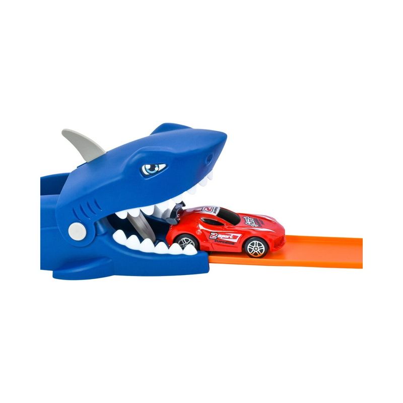 La Pista Lanzadora Fast Shark con Auto Max Racer combina velocidad y acrobacias en un mismo set. Incluye un tiburón lanzador con boca abierta, base con forma de volcán y un auto de carreras free wheels que los niños impulsan para superar el aro y completar el salto. Este juego estimula la coordinación mano ojo, la precisión y el calculo de distancia mientras los pequeños crean historias llenas de adrenalina alrededor del tiburón y el volcán.