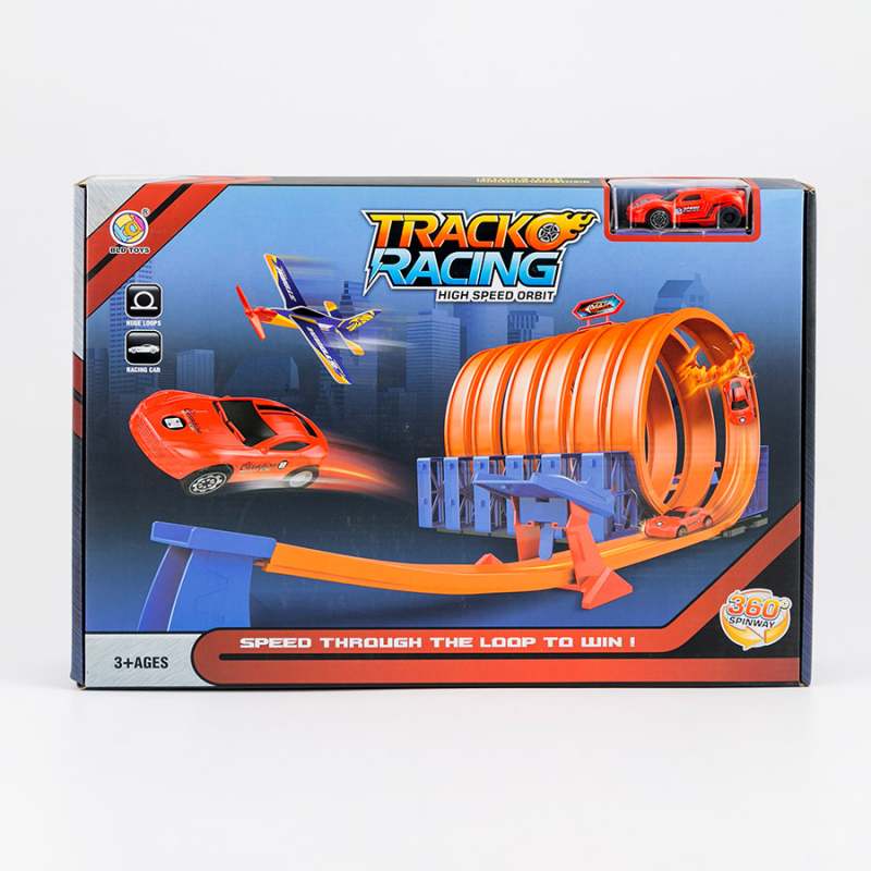 Pista de carrera de 6 vueltas para niños, ideal para disfrutar en familia o con amigos, fácil de instalar, el regalo perfecto para mantener a tu hijo felìz y entretenido, fabricado de material plástico de calidad no toxico seguro y duradero, es una excelente opción de regalo para toda ocasión, incluye 2 stickers, 1 carro, 7 vallas, o vías para pista, 7 bases, 1 elevador, 1 patineta, 1 bastidor de despegue, 2 accesorios para señales de tráfico, 2 estantes, 1 soporte, dimensiones del producto 41.5x6.7x32.4cm. Edad recomendada de uso mayor de 3 años.