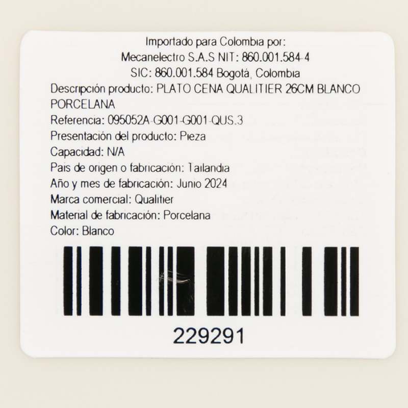 Plato Cena Qualitier 26Cm Blanco Porcelana Material: Fabricado en porcelana, conocido por su resistencia y por no alterar el sabor de los alimentos. Tamaño: 26 cm, perfecto para porciones más grandes o para servir comidas de varios platos. Diseño: Con un acabado blanco, sencillo y moderno, es ideal para cualquier tipo de decoración de mesa.