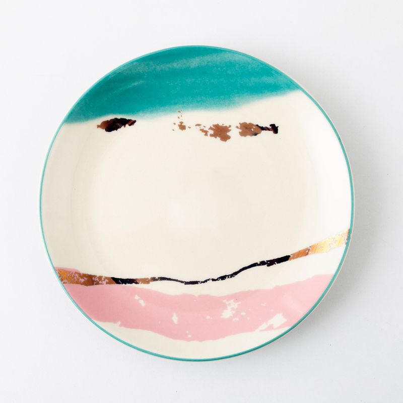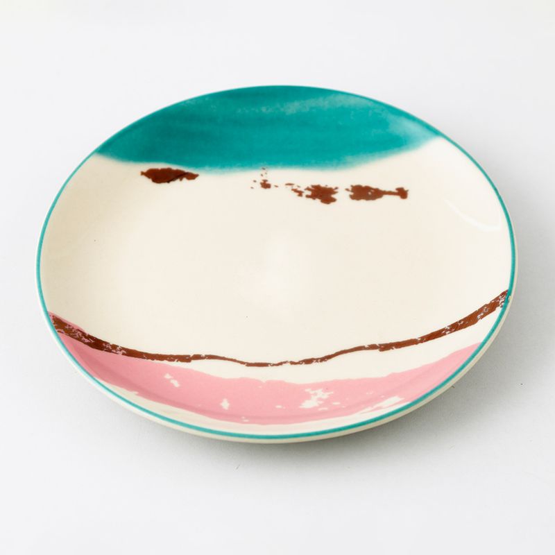 El Plato Postre Corona Genesis de 20 cm en cerámica color azul, es una pieza de vajilla de material cerámico con un diseño moderno inspirado en la colección Génesis de Vajillas Corona, caracterizada por motivos abstractos y degradados de color que aportan estilo y movimiento a tu mesa.