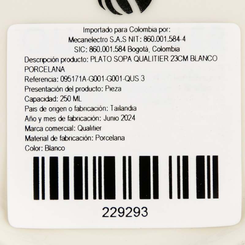 Plato Sopa Qualitier 23Cm Blanco Porcelana Material: Fabricado en porcelana, ideal para conservar la temperatura de la sopa por más tiempo. Tamaño: 23 cm, perfecto para servir sopas o caldos de porciones medianas. Diseño: Blanco clásico, adecuado para todo tipo de presentación.