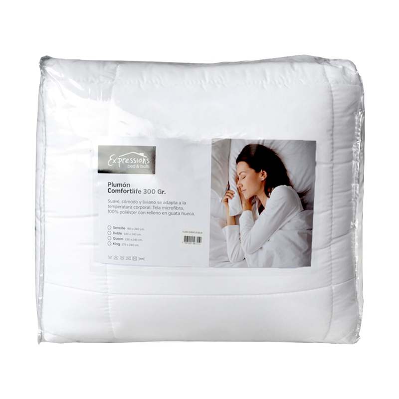 Suave,ligero, se adapta a la temperatura corporal, cómodo, liviano. Tela microfibra 100% poliéster con relleno en guata hueca. lavar en màquina con agua a temperatura màxima de 30ºC en ciclo suave, no usar blanqueador clorado , no dejar en remojo, lavar por separado, no usar secadora, no lavar en seco, secar a la sombra o aireado, no planchar