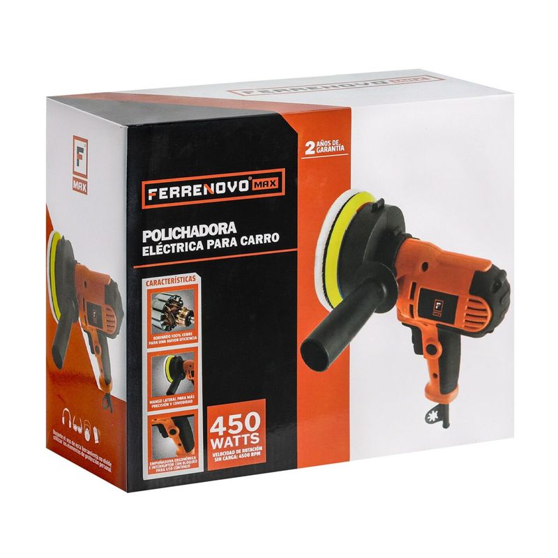 ¡Consigue un acabado profesional con la polichadora Ferrenovo de 450W! Con mango lateral para mayor seguridad, empuñadura ergonómica e interruptor de bloqueo para un uso continuo. Ideal para trabajos exigentes, ofrece un ciclo de 20 minutos con descanso de 10. Incluye discos intercambiables y cable de 2 metros para mayor alcance. Perfecta para pulir con precisión y comodidad. ¡Haz brillar tus proyectos con Ferrenovo!