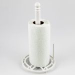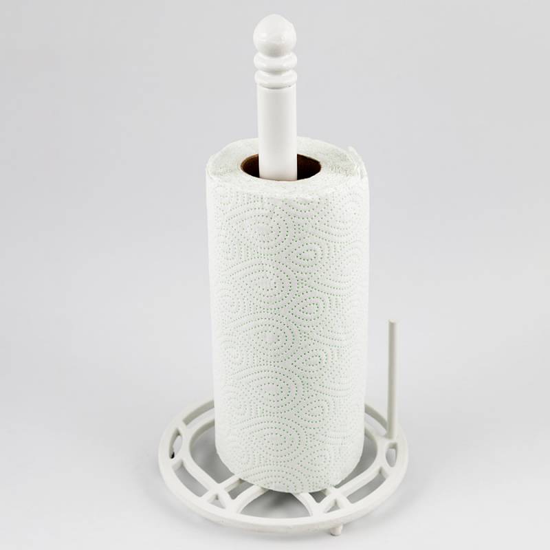 Porta rollo de hierro fundido color blanco, ideal para organizar tus toallas de cocina.