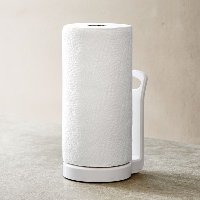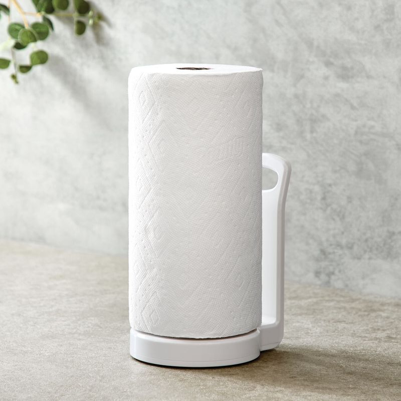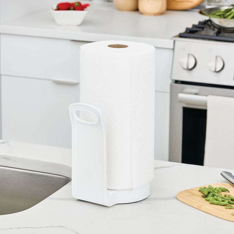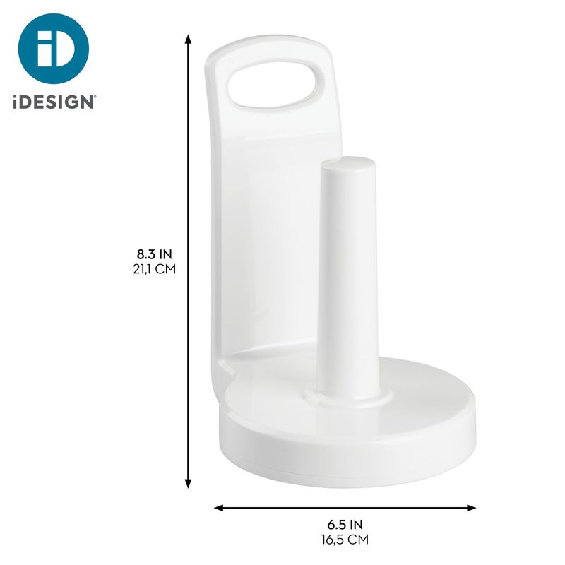 Porta Rollo Interdesign de 17 x 21 cm, color blanco, en plástico. Accesorio funcional para la cocina, diseñado para mantener el rollo de papel al alcance y facilitar su dispensación. Ideal para optimizar el orden en mesones o alacenas gracias a su estructura estable y de fácil uso.