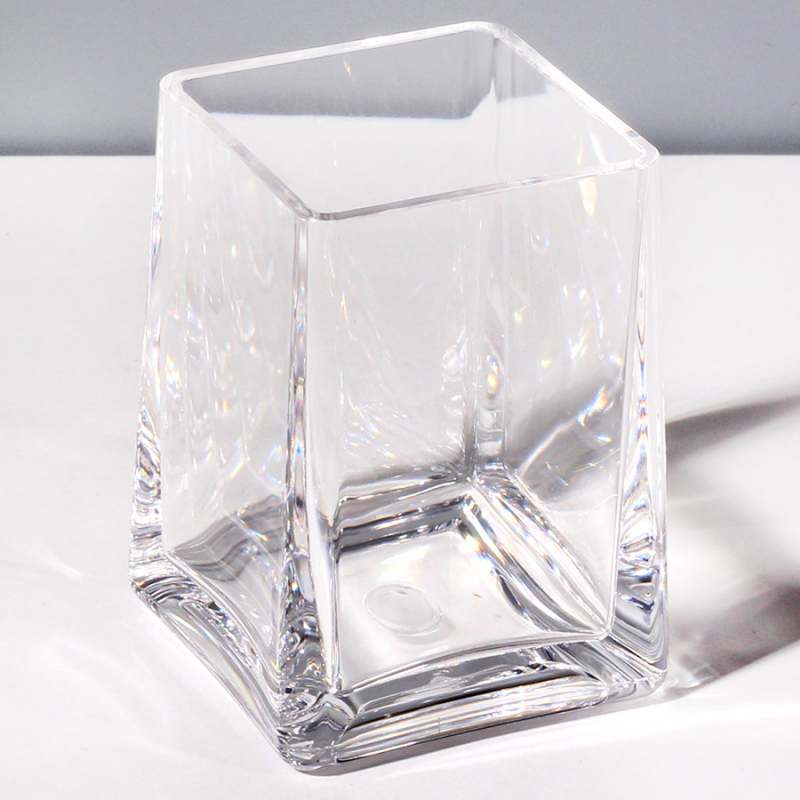 Vaso para baño en acrílico, diseño cuadrado. Composición gruesa, contraste brillante y diseño con doble borde. Práctico, duradero y resistente.