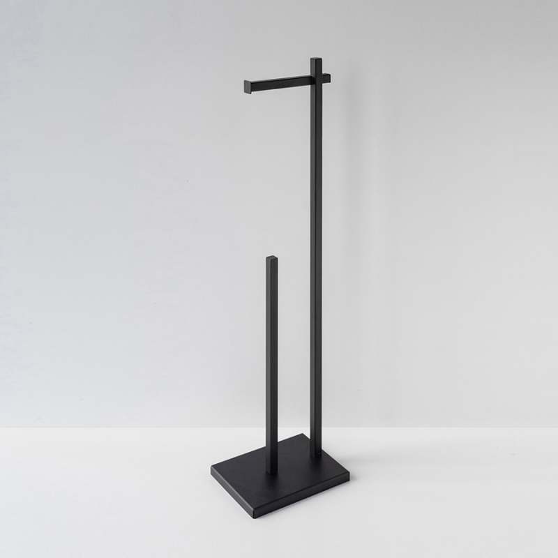 Portarrollos de papael higienico metalico, color negro. Posee espacio de almacenamiento. Esta doble funcion maximiza los espacios de tu baño. Dimensiones: 20x15x71.5cm