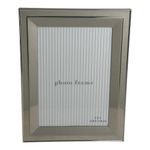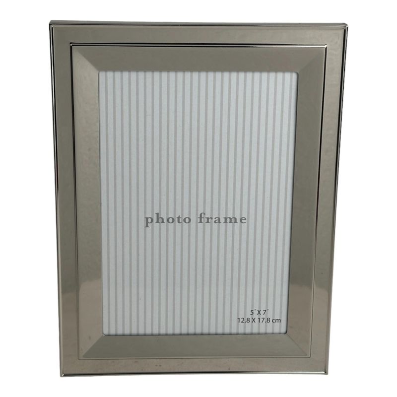 Portarretrato en hierro con acabado plateado y marco biselado de líneas definidas, formato para fotografía 5x7”, medidas 21.50x16.50 cm, ideal para decorar espacios modernos