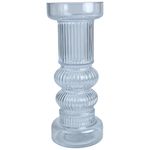 Portavela en vidrio transparente con diseño texturizado tipo Alba y acabado brillante, medidas 9x22x9 cm, ideal para velas decorativas, para aportar un toque elegante y luminoso a mesas, consolas o espacios especiales.