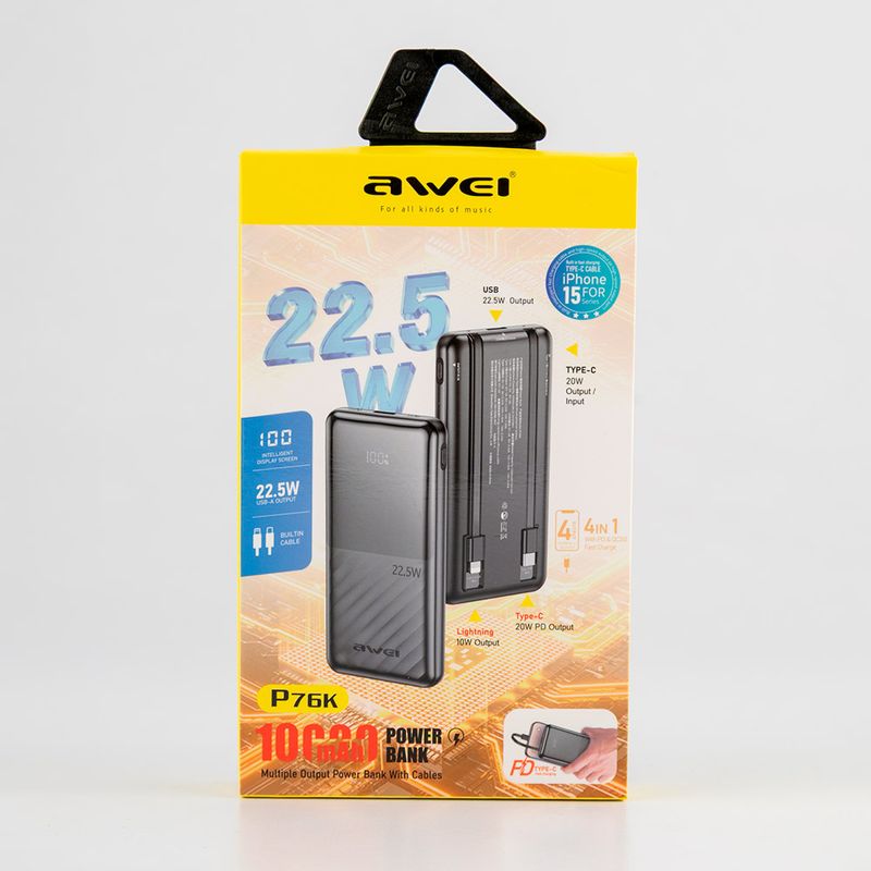 Power Bank Awei Inalambrica 22 W 10000 Ma P76K