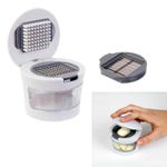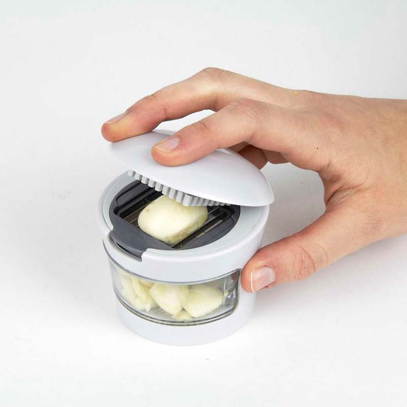 Prensa ajo easy make ku6429 con recipiente en plastico surtido. Preparar ajos se convertirá en un juego de niños gracias a este prensador de ajos. basta con colocar el diente de ajo encima y presionar para obtener ajo machacado para salsas y condimentos. dispone de un depósito extraíble, una tapa prensadora, dos rejillas de corte y una rejilla de limpieza gris burdeos blanco 6.3x7.5x7.5 cm 50 % plástico. Los productos marcados como 'producto surtido' pueden no ser idénticos a los que aparecen publicados en las imágenes, las imágenes son ilustrativas, al comprar un producto identificado como producto surtido, aceptas que podrás recibir un producto con características y atributos tangibles diferentes a los que aparecen en las imágenes del sitio o la publicidad, los productos surtidos mantendrán las propiedades físicas, químicas y técnicas necesarias para su funcionamiento y uso de acuerdo a su naturaleza.