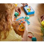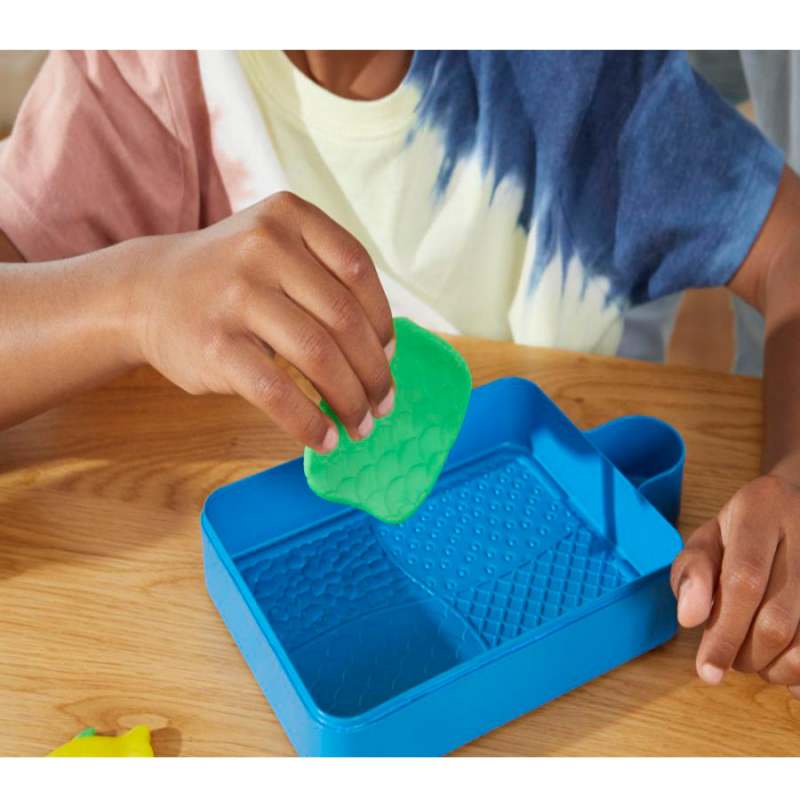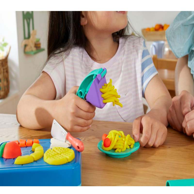 •Los juguetes preescolares como el set Primeras creaciones del pequeño chef de Play-Doh te permitirán hacer creaciones con temática de cocina mientras cortas, haces rebanadas y das forma con 14 accesorios de cocina y 5 colores Play-Doh. •Usa los cortadores y moldes para crear fresas y zanahorias Play-Doh y mucho más. Luego, sigue las guías correspondientes en la tabla de cortar de juguete para hacerlas rebanadas. •Este set de cocina incluye herramientas para manualidades como un rebanador de huevos de juguete, un cuchillo ondulado y muchos medios moldes para que puedas crear divertidos alimentos de juguete como camarones y cruasanes.