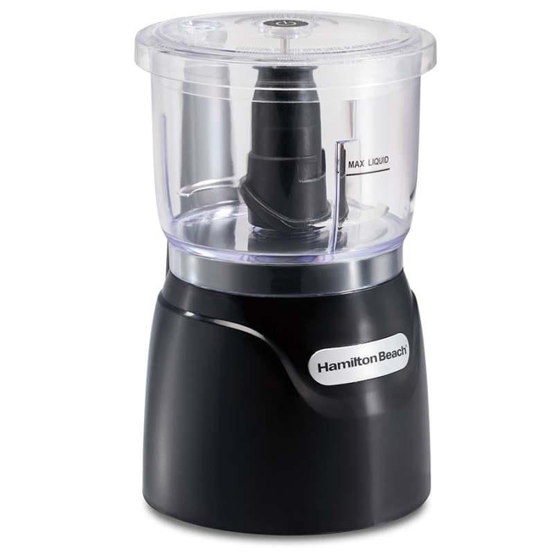 Hamilton Beach® Stack & Press™ Cortador de comida • Capacidad para 3 tazas • Simplemente apile y presione para cortar - suelte para detene • Tamaño perfecto para uso diario con tazón de 3 tazas • Pique, haga puré y emulsione fácilmente con cuchillas de acero inoxidable • Dispensador de aceite en la tapa para emulsionar apósitos y salsas • Potente motor de 350 watt • Conveniente envoltura de cable • Tazón, tapa y cuchilla aptos para lavavajillas