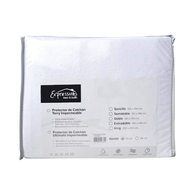 Protector Colchon Expressions King 200X200Cm Blanco Impermeable