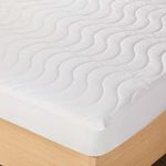 Protector para colchón extradoble, color blanco, acolchado, antifluidos, elaborado 100%poliester, guata Thermofill de alta duracion, antibacterial. Dimensiones: 160x190x30cm