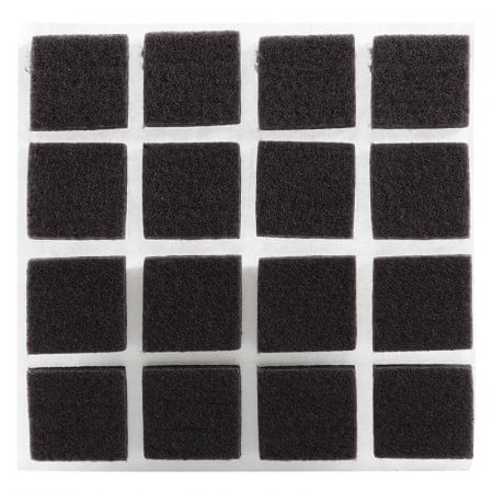 Set de dieciseis fieltros protectores para muebles con adhesivo. Color negro. Forma cuadrada. Se adecuan a las superficies. Protegen los muebles y su contacto con el piso. Practicos. De facil uso. No se caen. Elaborados en Colombia.
