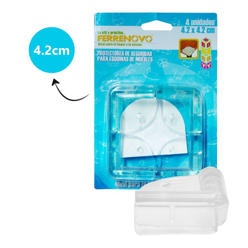 Protectores Seguridad para Esquinas de Muebles 42 X 42 Mm X 4 Und Ferrenovo desliza suave y cuida el piso en muebles y equipos de uso diario. Adhesivo de alto agarre para instalación rápida. Mayor soporte en piezas robustas y equipos pesados. Apto para madera, baldosa, laminados. Instala, protege y olvídate del ruido.