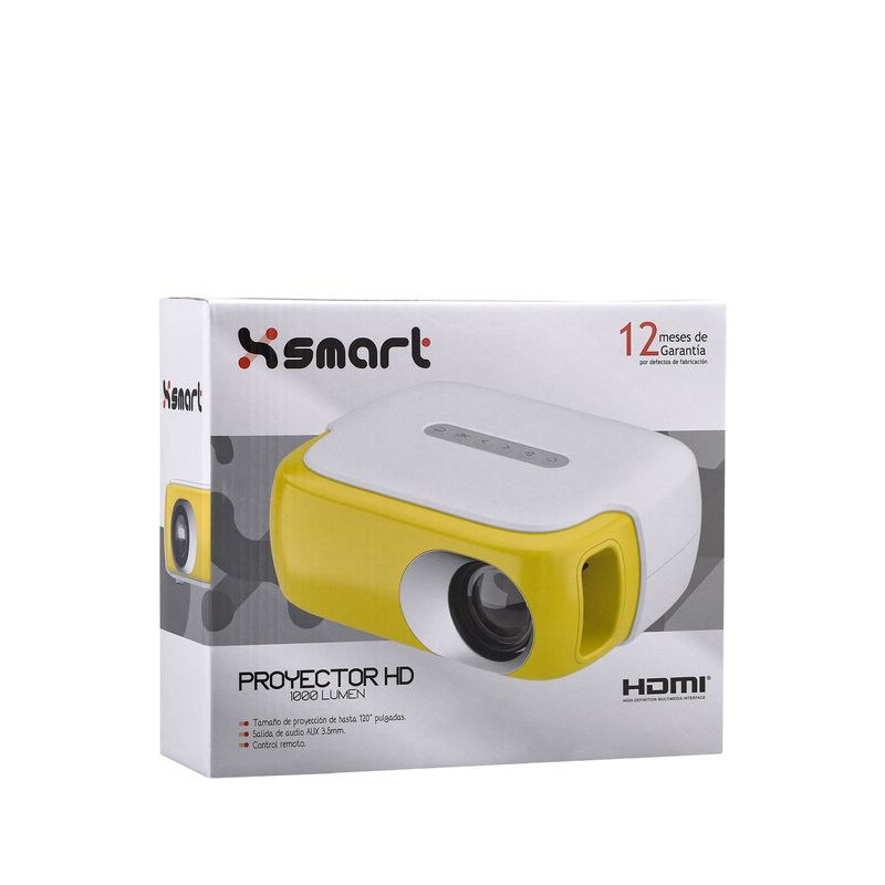Proyector compacto y versátil con brillo de 1000 lúmenes y proyección de hasta 120”. Compatible con entradas HDMI, USB y AV, soporta resolución Full HD y cuenta con salida de audio AUX 3.5 mm. Ideal para cine en casa, presentaciones y eventos, incluye control remoto.