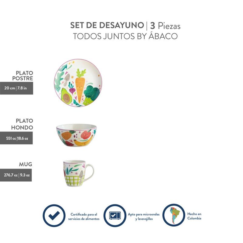 MesaInfantilSet Desayuno Infantil Cerámica PorcelanaPuesto Desayuno Corona Abaco Multicolor 3 Pz Ceramica Sl169K16