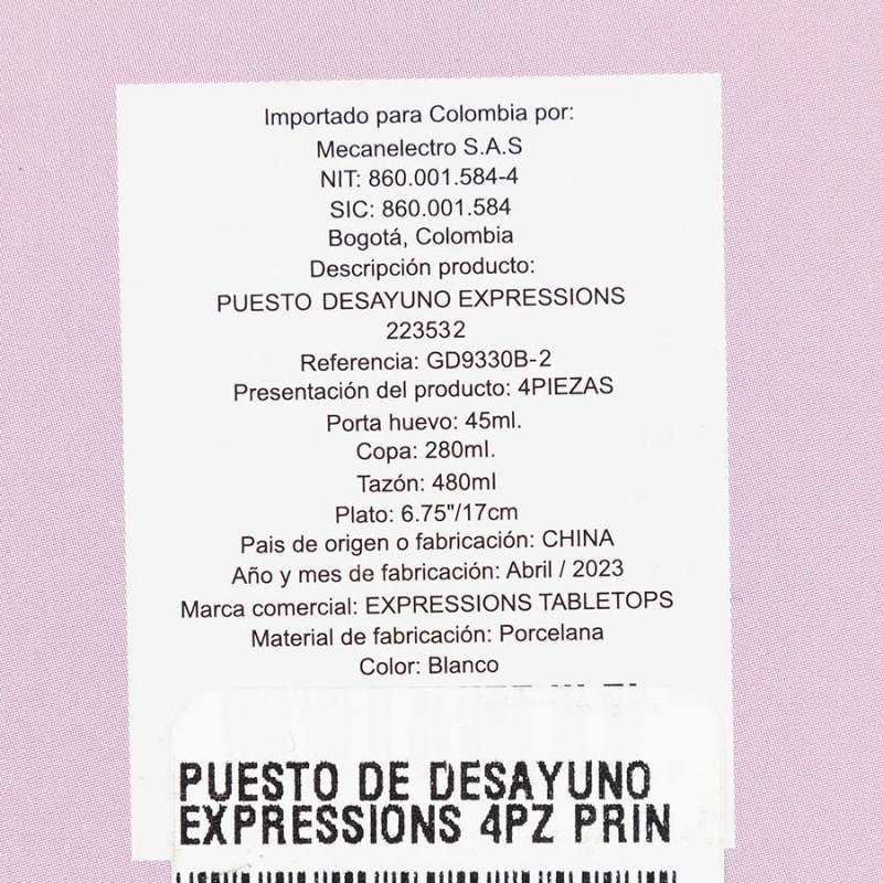 Puesto Desayuno Expressions Princesas Blanco 4 Pz Ceramica Gd9