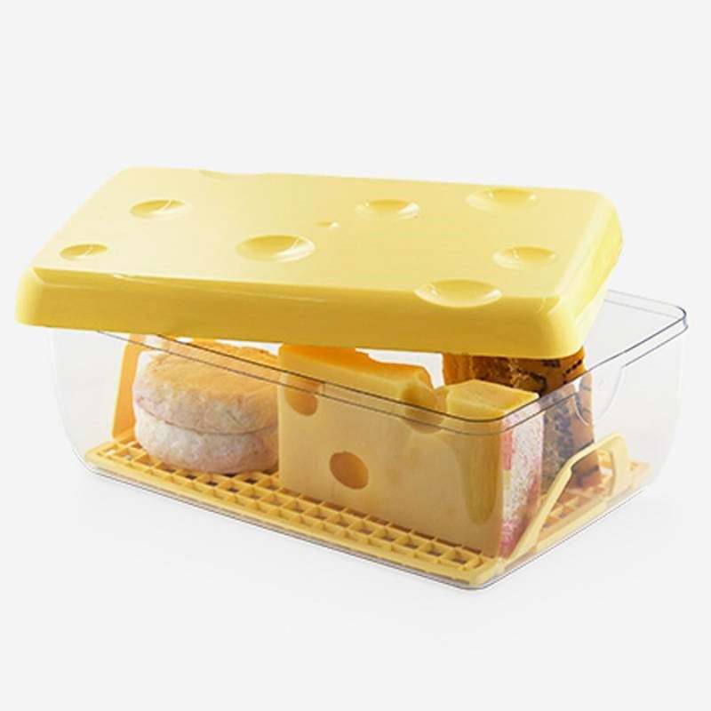 Recipiente para guardar cualquier tipo de queso en la nevera, con una bandeja perforada extraíble para facilitar su uso y limpieza, con capacidad de 3 litros, fabricada en SAN 100% libre de BPA