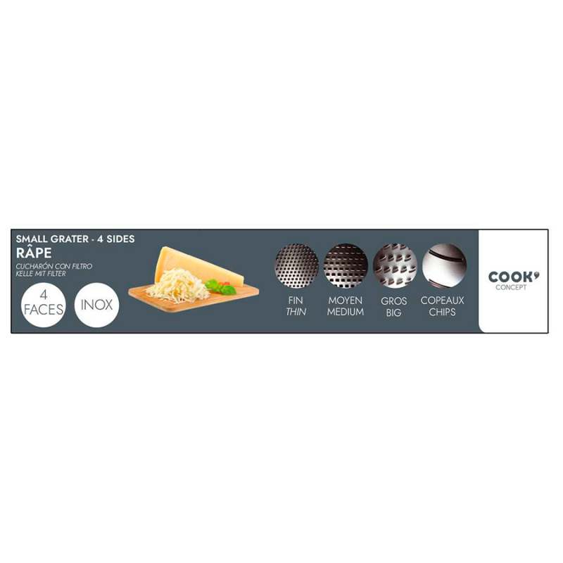 Rallador easy make kb6791 4 caras en acero inoxidable surtido. Ralle los alimentos de diferentes maneras con este rallador de acero inoxidable de 4 caras y deje volar su imaginación en la cocina. Haga virutas de chocolate o queso parmesano y ralle frutas y verduras finas, medianas y gruesas. El modelo dispone de un asa superior para ayudarle a estabilizar el aparato durante su uso 12x5.5x6.5 cm 100 % metal. Los productos marcados como 'producto surtido' pueden no ser idénticos a los que aparecen publicados en las imágenes, las imágenes son ilustrativas. al comprar un producto identificado como producto surtido, aceptas que podrás recibir un producto con características y atributos tangibles diferentes a los que aparecen en las imágenes del sitio o la publicidad, los productos surtidos mantendrán las propiedades físicas, químicas y técnicas necesarias para su funcionamiento y uso de acuerdo a su naturaleza.