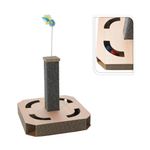 Rascadera para gato elaborada en madera y materiales resistentes, diseñada para satisfacer el instinto natural de rascado, ayudar a proteger los muebles y ofrecer un espacio cómodo y estable, con acabado beige que se integra fácilmente en el hogar.