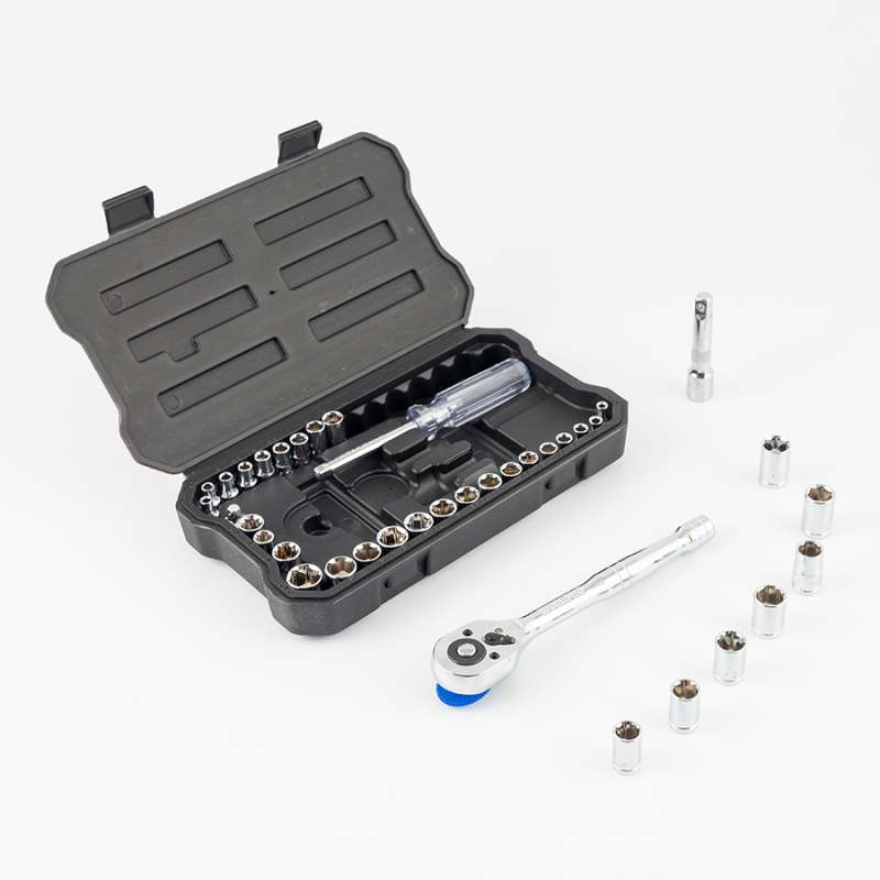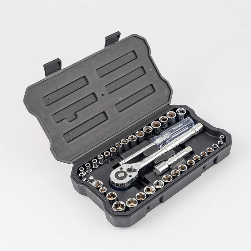 El Juego de Ratchet WORKPRO 39 Pz 1/4 WP202536 es un conjunto completo y versátil, ideal para tareas de ajuste y reparación. Con 39 piezas, que incluyen un ratchet de 1/4', este juego cubre una amplia gama de aplicaciones, permitiendo un trabajo eficiente y preciso. Fabricado con acero de alta calidad, las piezas ofrecen durabilidad y resistencia al desgaste, mientras que el mango ergonómico proporciona un agarre cómodo y seguro durante su uso. Características: Juego de 39 piezas, incluye ratchet de 1/4' y diversas llaves de vaso. Fabricado con acero de alta calidad, garantizando resistencia y durabilidad. Mango ergonómico, para un agarre cómodo y un control óptimo. El Juego de Ratchet WORKPRO 39 Pz 1/4 WP202536 es ideal para quienes buscan un conjunto completo y confiable para trabajos de ajuste y reparación.