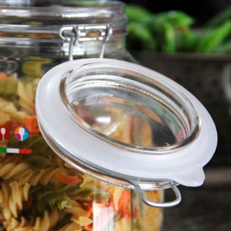 Frasco hermetico fabricado en vidrio Italiano marca BORGONOVO 30% más resistente, más brillante y más transparente, su cierre esta fabricado en acero inoxidable le dara mayor durabilidad. Capacidad 500 ml.
