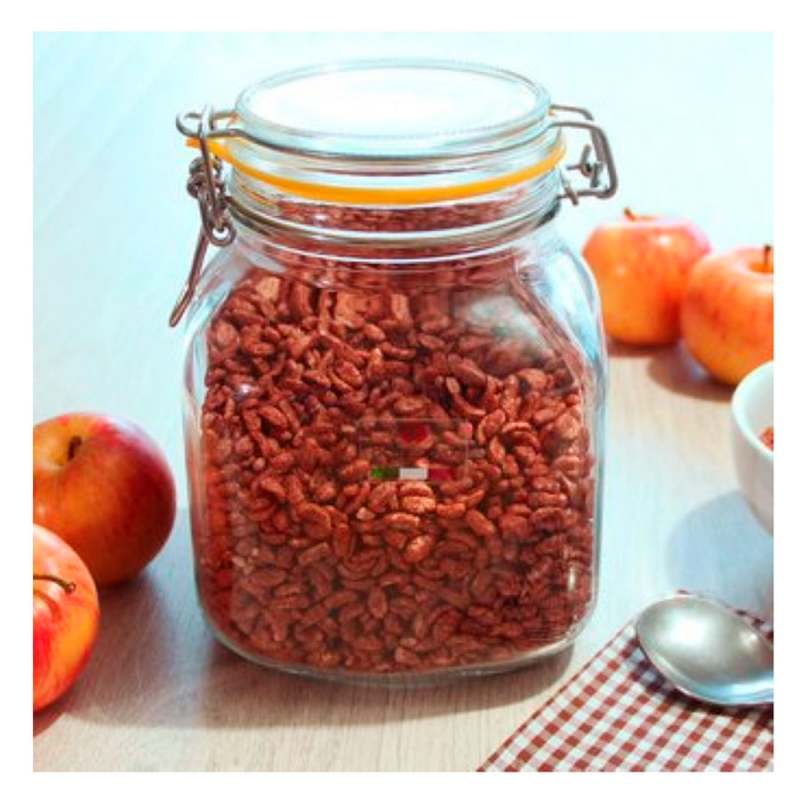 Frasco hermetico fabricado en vidrio Italiano marca BORGONOVO 30% más resistente, más brillante y más transparente, su cierre esta fabricado en acero inoxidable le dara mayor durabilidad. Capacidad 750 ml.