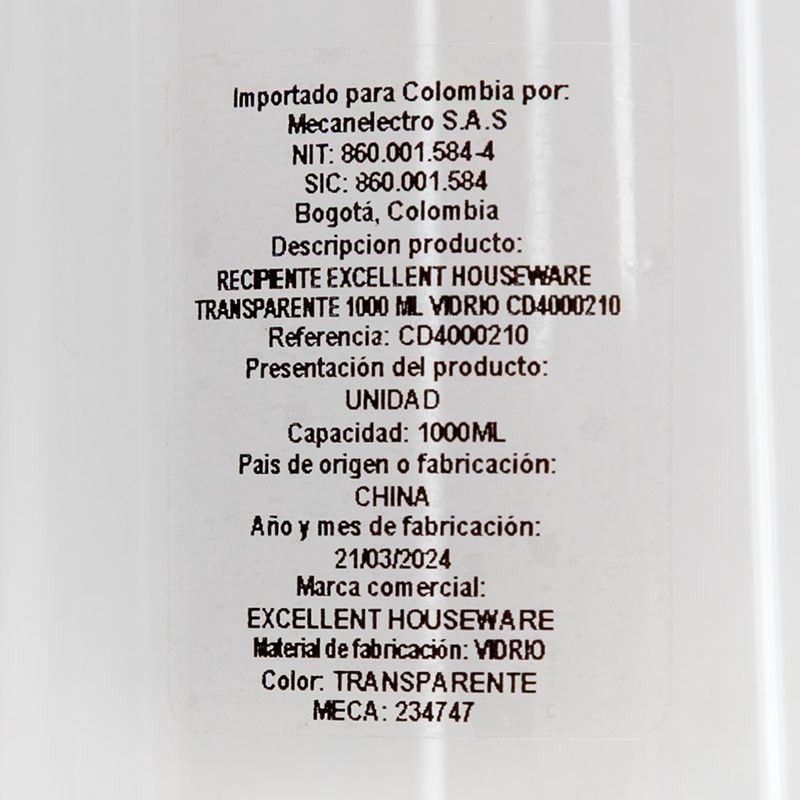 Recipiente de vidrio 1000 ml