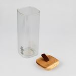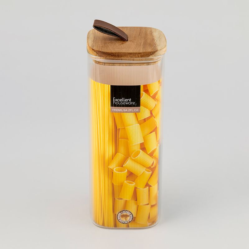 Recipiente Excellhouse Transparente de 1900 ml, en vidrio con tapa de madera y cordón para fácil apertura. Ideal para almacenar alimentos secos, granos o ingredientes, aportando un estilo natural y permitiendo una adecuada conservación del contenido.
