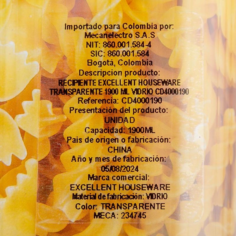 Recipiente Excellhouse Transparente 1900 Ml Vidrio Cd4000190
