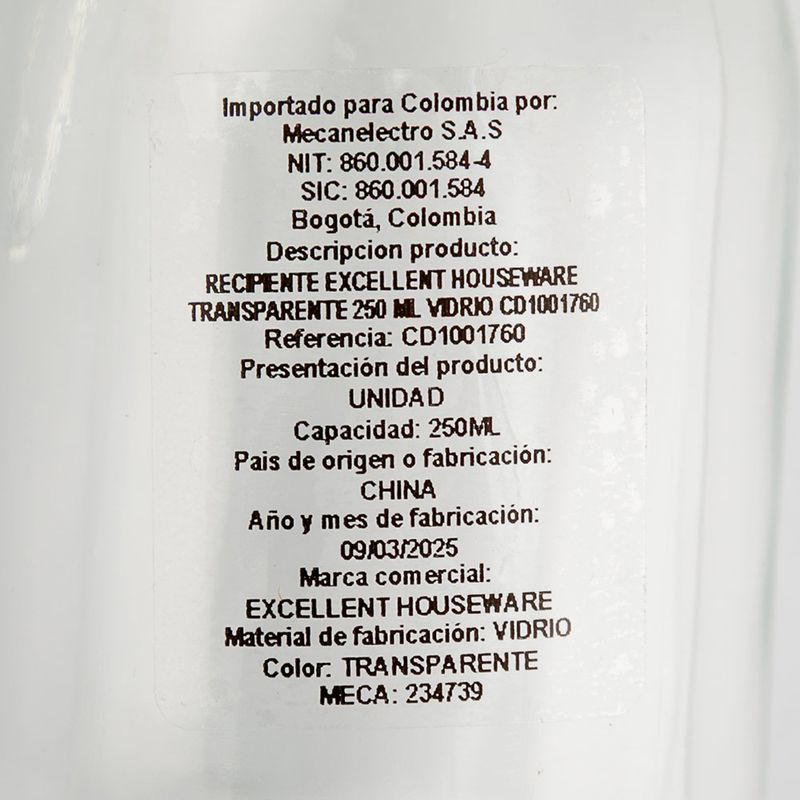 1 Recipiente de vidrio 250 ml (Surtido entre colores azul, rojo o amarillo)