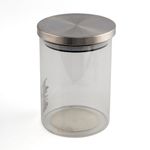 Fabricado en vidrio de alta resistencia con un diseño cilíndrico totalmente transparente que facilita la organización y visibilidad de los alimentos. Cuenta con una tapa de acabado metálico cepillado que proporciona un cierre seguro y un toque moderno a la cocina. Su capacidad de 750 ml es ideal para almacenar granos, semillas, frutos secos o café, manteniendo los productos protegidos en un contenedor higiénico.