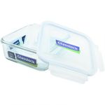 RECIPIENTE DE VIDRIO CUADRADO DE 900 ml CON TAPA DE PLASTICO BORDE AZUL. MARCA: GLASSLOCKVidrio Templado y Cierre hemético.Glasslock está hecho de vidrio templado que garantiza excelente resistencia y durabilidad. Su tapa hermética conserva líquidos, humedad y olores dentro del recipiente. El vidrio no expone en peligro al ser humano por contaminación con toxinas al ser calentado en Microondas. Envases herméticamente cerrados, con alas de seguridad en los cuatro lados y diseño antideslizante para un uso seguro. - Resistente al calor para el uso diario: Glasslock está hecho en vidrio templado resistente al calor, al impacto y al rayado para mayor seguridad. Pueden ser usados tanto en el congelador como en el microondas (no se recomienda hacer cambios violentos de temperatura).- Totalmente Hermético: Tapas de seguridad con alas de bloqueo en los cuatro lados y anillos de silicona que los hacen completamente herméticos- Libre de BPA (Bisfenol A)- Recomendado para Microondas - No toxico - Recomendado para lavaplatos - Recomendado para refrigeradores/congeladores.