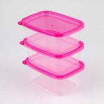 Set x 3 recipientes con tapa Rectangulares Apto para microondas Refrigerador Lavavajillas Capacidad para 25 onzas. Colores sujetos a disponibilidad.