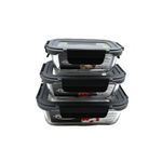 Contenedor en vidrio de borosilicato con tapa de polipropileno. Color transparente con clic en gris. Tiene capacidad de 640 ml. Resiste -20 grados y hasta 560 grados. Son libres de pfoa.
