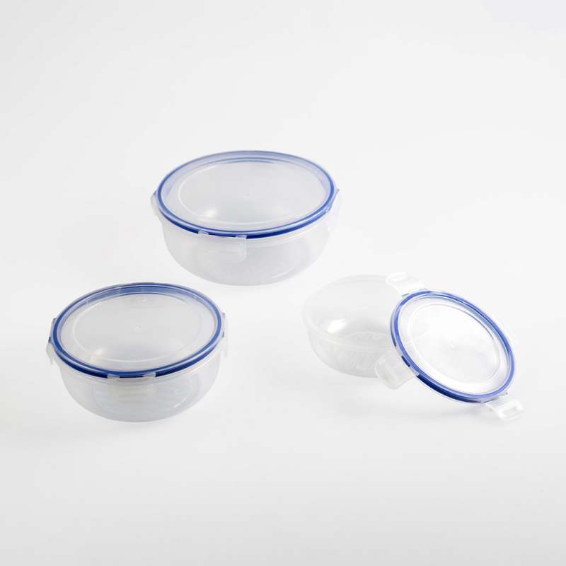 Recipientes excellhouse 3 ud plástico 024000670 Set de 3 recipientes circulares en plástico resistente, diseñados para almacenarse uno dentro del otro, optimizando espacio en tu cocina. Ideales para conservar alimentos frescos, secos o preparados, manteniendo su sabor y calidad por más tiempo. Su material duradero y fácil de limpiar los hace perfectos para el uso diario, mientras que su diseño práctico y funcional permite organizar tu despensa o refrigerador de manera eficiente. Versátiles y convenientes, son un accesorio esencial para cualquier hogar.