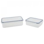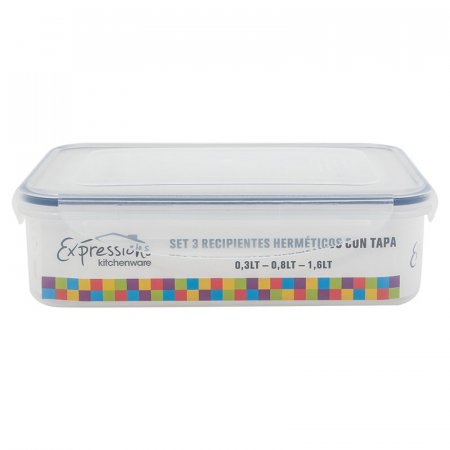 Set de 3 recipientes rectangulares bajos expressions kitchenware MB01-transparente La cocina, el corazón de tú hogar. Se trata de tu cocina, el famoso corazón del hogar y de donde emergen los mejores platos y preparaciones, donde se trata de consentir a los paladares del hogar e incluso aquellos de nuestros conocidos y compañeros de trabajo y estudio. Por ello, es costumbre dedicarle una cantidad de tiempo adicional para lograr dar con los mejores productos para así mantenerla: aquellos que reúnen calidad, durabilidad y utilidad. Organiza y resguarda. Este set de 3 recipientes rectangulares se convertirá en el conjunto de recipientes ideales para conservar y preservar los distintos tipos de productos o alimentos que utilices en tu cocina, aquellos que utilizas para elaborar los mejores y más exquisitos platos. Diseñado para que dure fue elaborado en plástico y adicionalmente cuenta con un sistema de cierre fácil hermético, para evitar cualquier tipo de derrame. Su diseño se presenta como moderno y sofisticado, de contraste brillante: se trata de un recipiente práctico y con alto potencial decorativo. Puede utilizarse para calentar alimentos, para resguardarlos en el congelador. Puede ser lavado ya sea a mano o con un lavavajillas: resistentes a los impactos. Siempre la mejor elección. Siempre se recomienda tomarse el tiempo necesario para hacer una buena elección de los productos que utilizaremos en nuestro hogar y sobre todo los que utilizaremos para equipar nuestra cocina, ya que de ello depende nuestra salud y buen estado de nuestras preparaciones: esta marca se distingue por la calidad y rigurosidad en la elaboración de todos sus productos. No te arrepentirás, sin duda alguna, de tu elección. Set de recipientes rectangulares. Material: plástico. Transparente. Forma rectangular. Cierre hermético. Apilables. Libre de BPA.