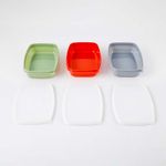 Set de recipientes joie de 3 piezas con capacidad de 1000 ml cada uno, fabricados en abs resistente. Diseñados para almacenar y conservar alimentos de forma segura y práctica. Cada recipiente cuenta con tapa hermética que ayuda a mantener la frescura de los alimentos y prevenir derrames. Su estructura apilable optimiza el espacio en la nevera o alacena, ofreciendo comodidad y funcionalidad en el uso diario. Ideales para el hogar, la oficina o para transportar comidas de manera ordenada.