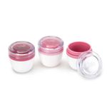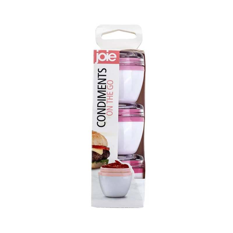 Set de Recipientes Joie X3 Pzs, en color Rosa (interior), exterior en color blanco y tapa transparente. Capacidad 485 ML. Medidas: 5x5x5 CM. Peso 0.29 kg. Fabricados en plástico. Perfectos para mayonesa, condimentos y otros aderezos. *Libre de BPAN. *No apto para microondas.